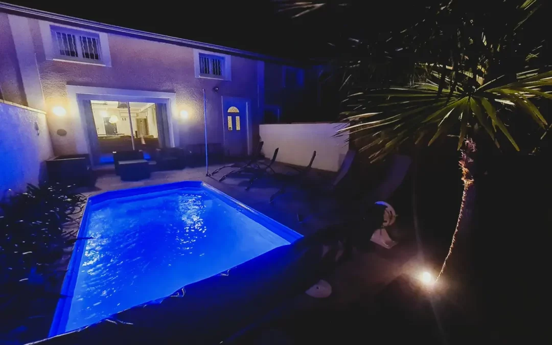 Piscine chauffée privée éclairée de nuit led couleurs modifiables le Loft Nature Bien Etre Piscine Chauffée Privée
