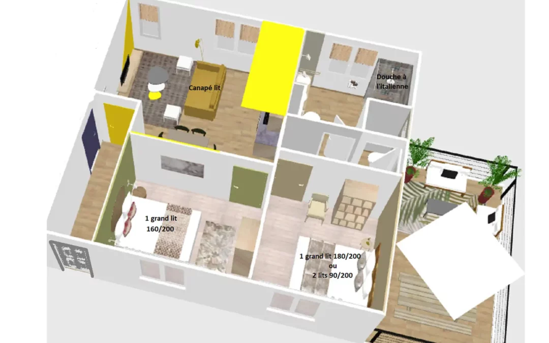 3d plan of the apartment Le Cottage Loin de L’oeil, holiday cottage in Tarn
